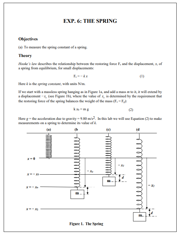 Solved EXP. 6: THE SPRING Objectives (a) To measure the | Chegg.com