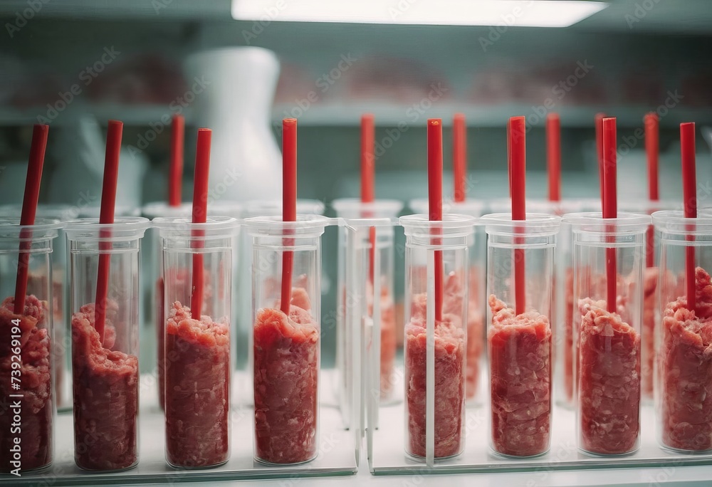 Premium Photo | LaboratoryGrown Meat Samples Artificial Beef in Containers