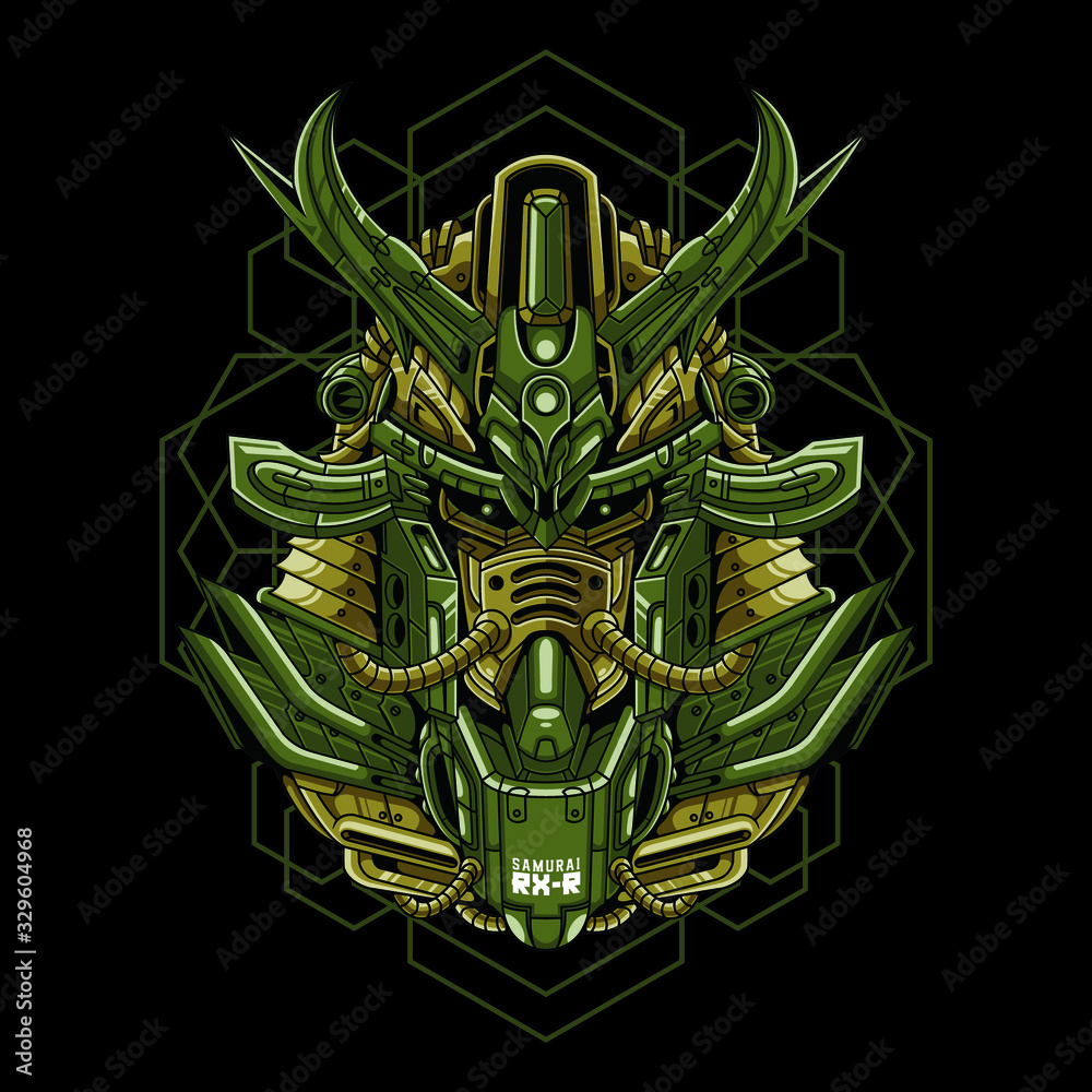 Mecha head samurai with sacred geometry pattern Stock Vector | Adobe Stock
