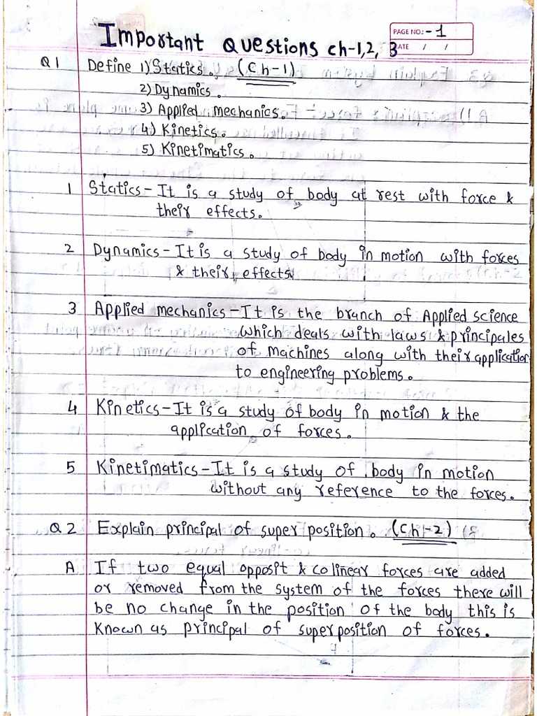 Handwritten notes for Applied or Engineering Mechanics | Lecture notes ...