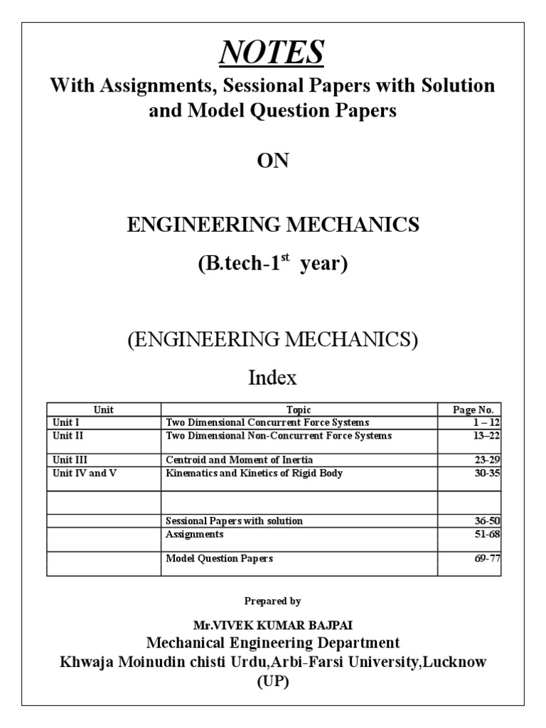 Engineering Mechanics Handwritten Notes for GATE, ESE, PSUs