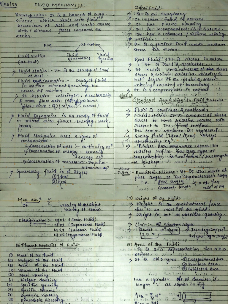 Fluid mechanics handwritten notes | Study notes Physics | Docsity