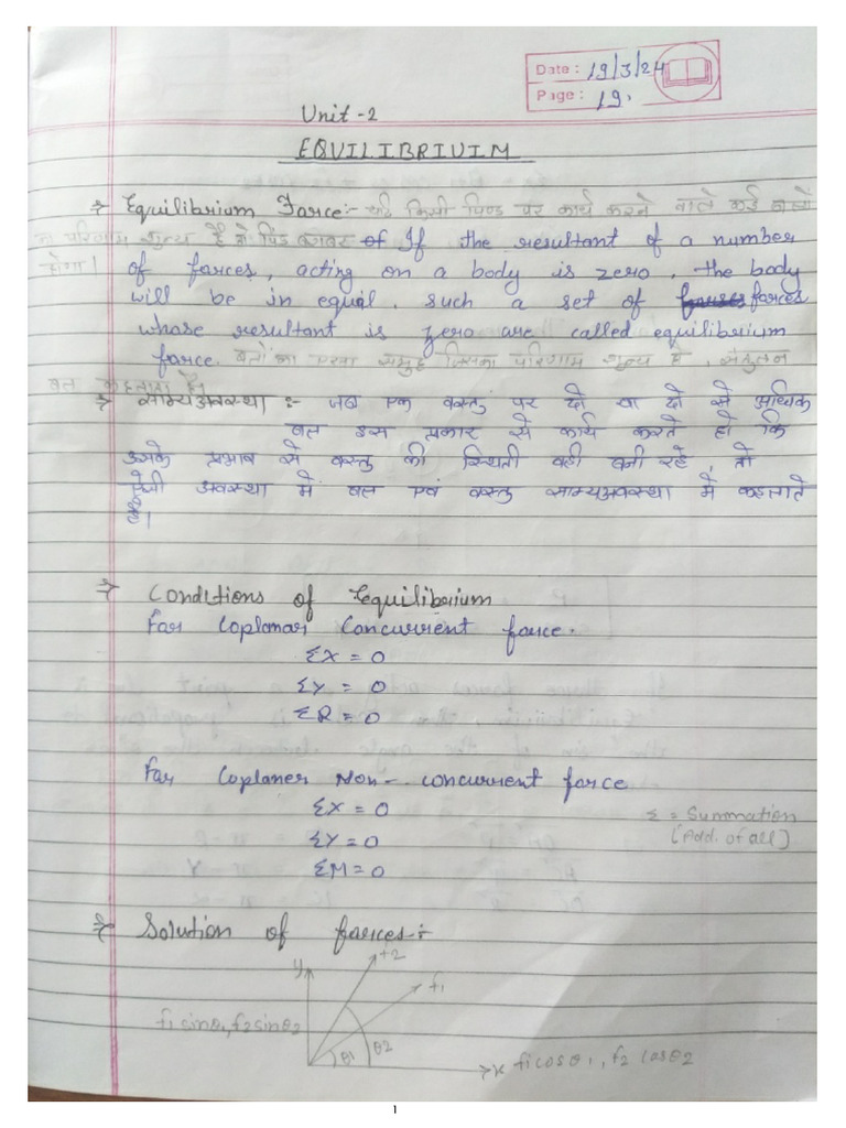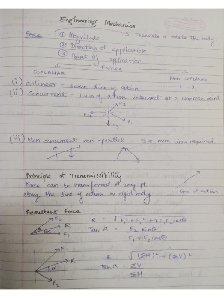 Engineering Mechanics Study Notes (Handwritten) Free PDF - GATE / FE
