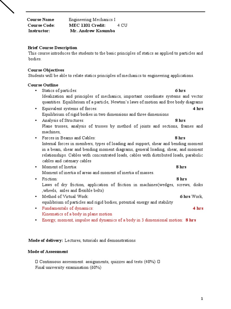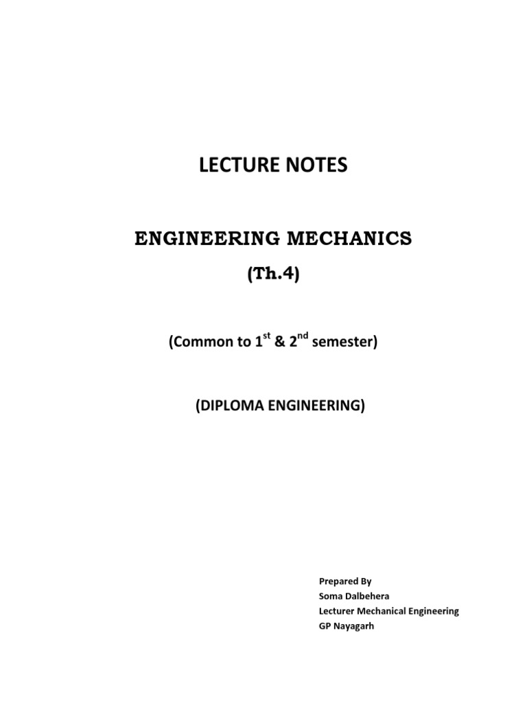 Engineering Mechanics Notes - Engineering Mechanics Notes Lecture Week ...