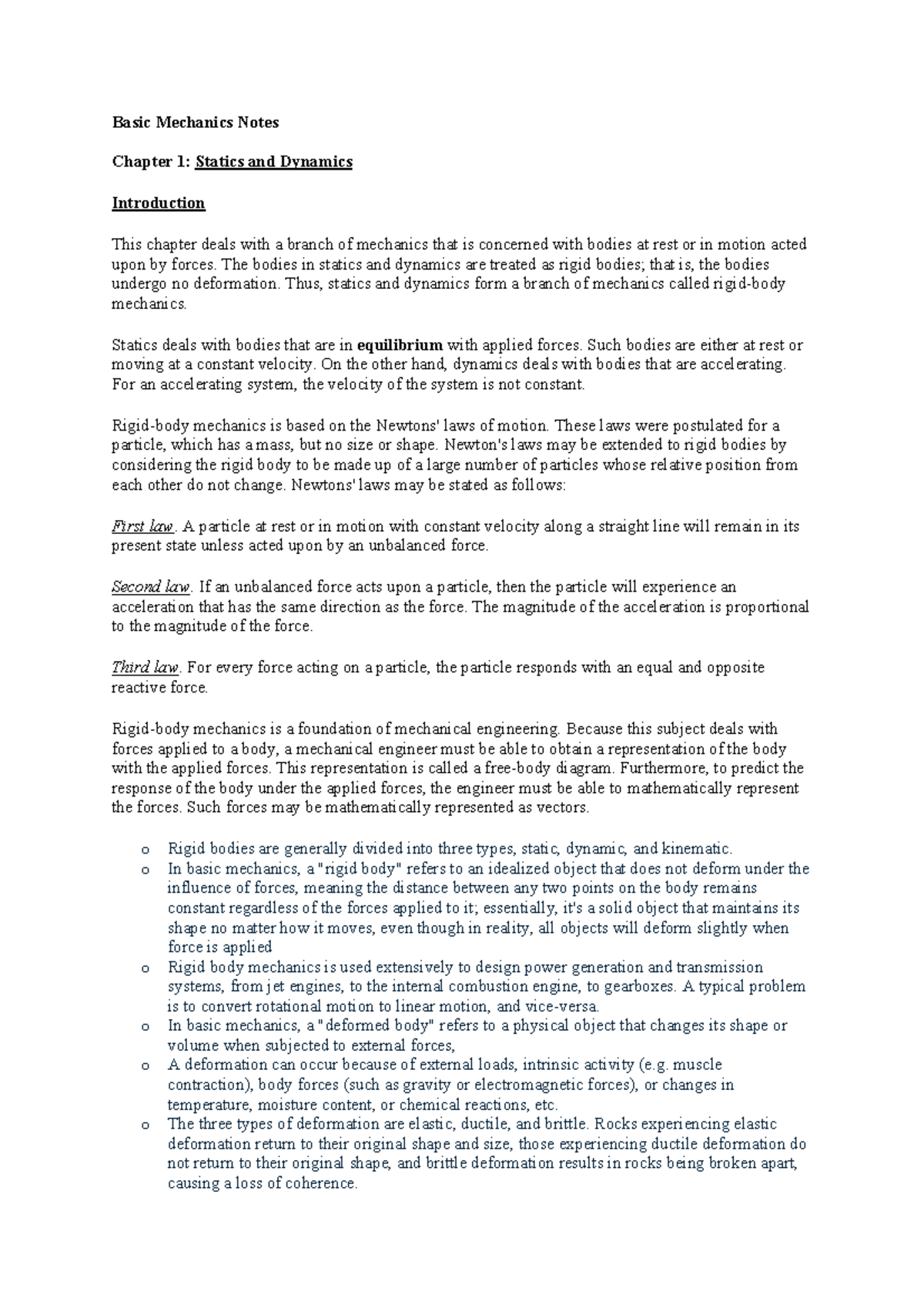 Basic Mechanics Notes - partial notes - Basic Mechanics Notes Chapter 1 ...