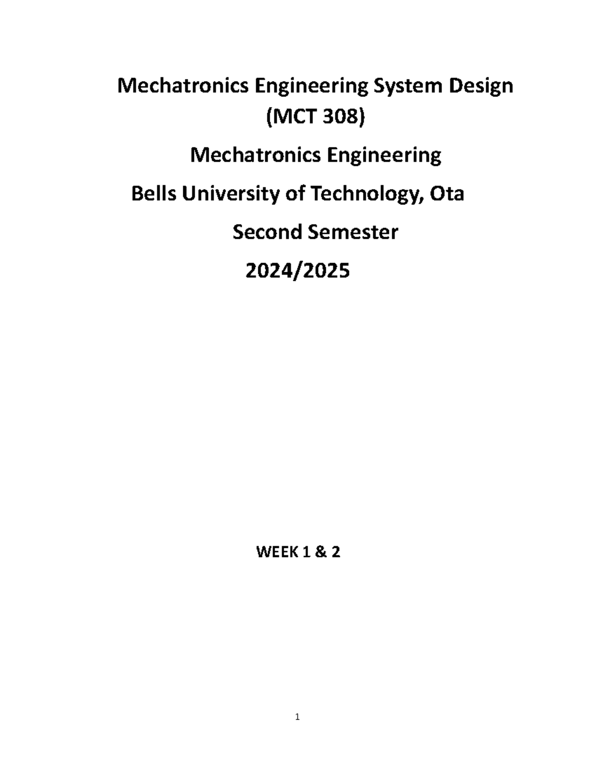 MCT 308 Lecture Notes: Introduction to Mechatronics Engineering - Studocu