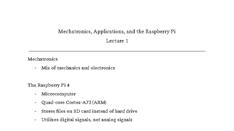 Mechatronics (ENGR 101) Lecture Notes: Raspberry Pi & Digital Logic ...