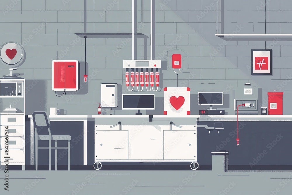 Illustration of a modern medical laboratory with equipment and heart ...