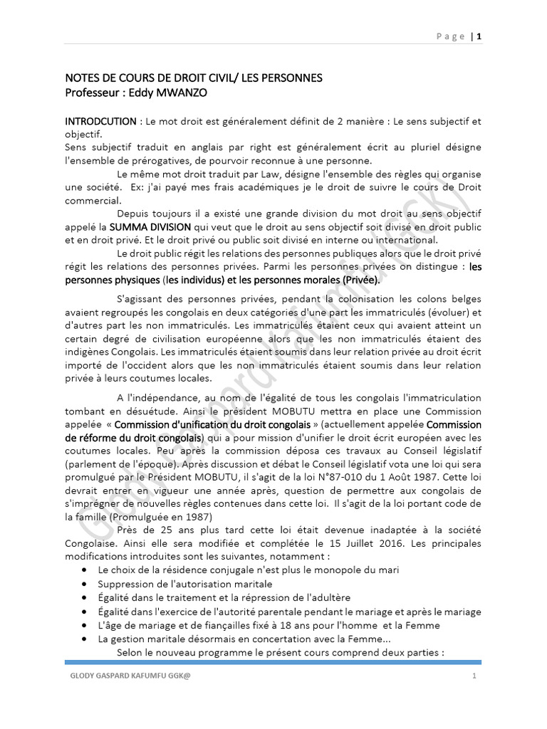 Notes de Cours de Droit Civil Les Personnes l1 Droit | PDF | Mariage ...