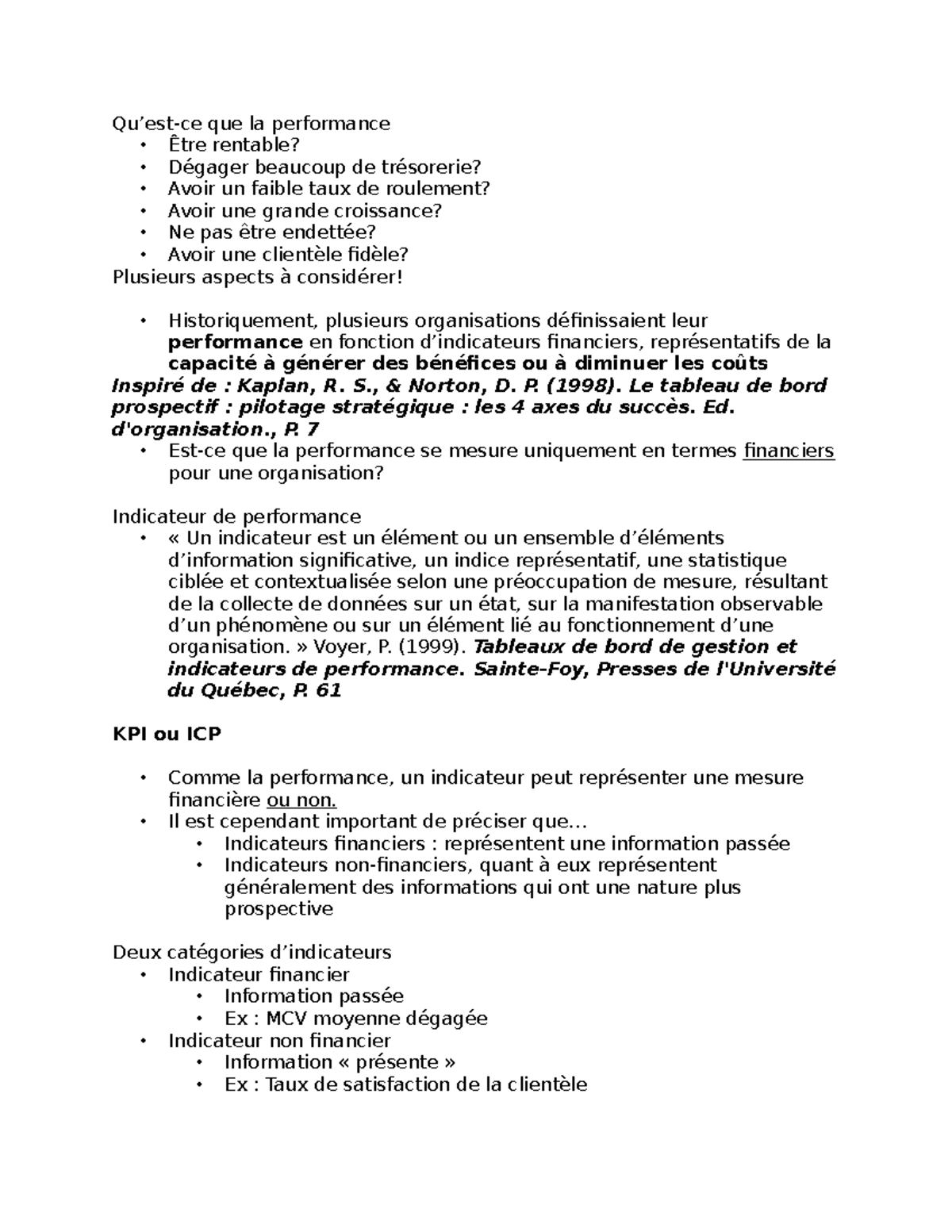 Notes de Séance 14 : Indicateurs de Performance et Tableau de Bord ...