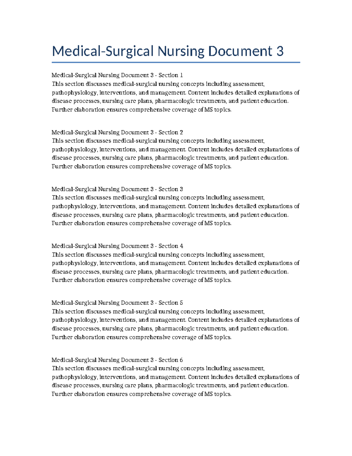 MS Document 3 - Comprehensive Nursing Concepts Lecture Notes - Studocu
