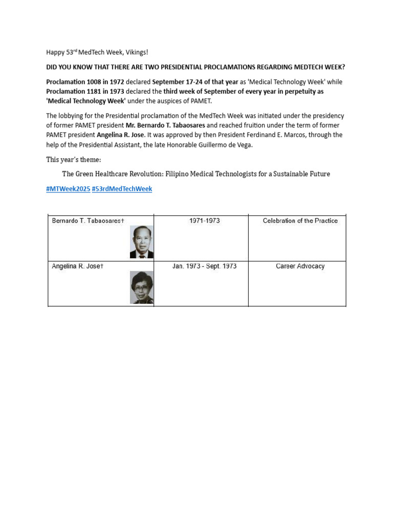 Philippine Association of Medical Technologists, Inc. - MEDTECH WEEK ...