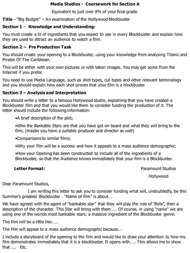 Media Studies Film Coursework Brief & Guide | Teaching Resources