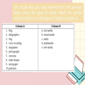 Media and Information Literacy: Quarter 1 - Module 5: Types of Media ...