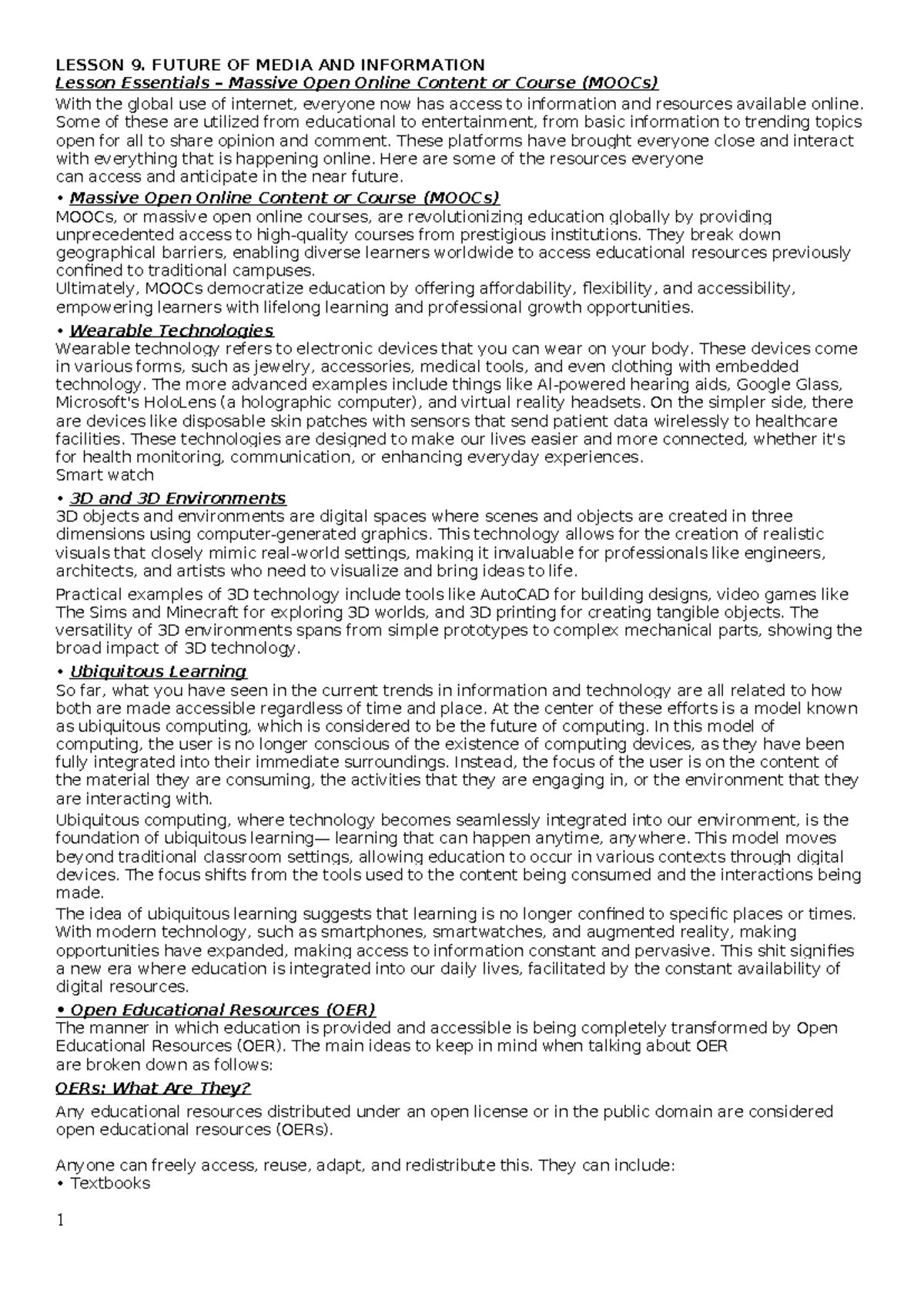 LESSON 9. FUTURE OF MEDIA & INFO: MOOCs, Tech, & Learning Trends - Studocu