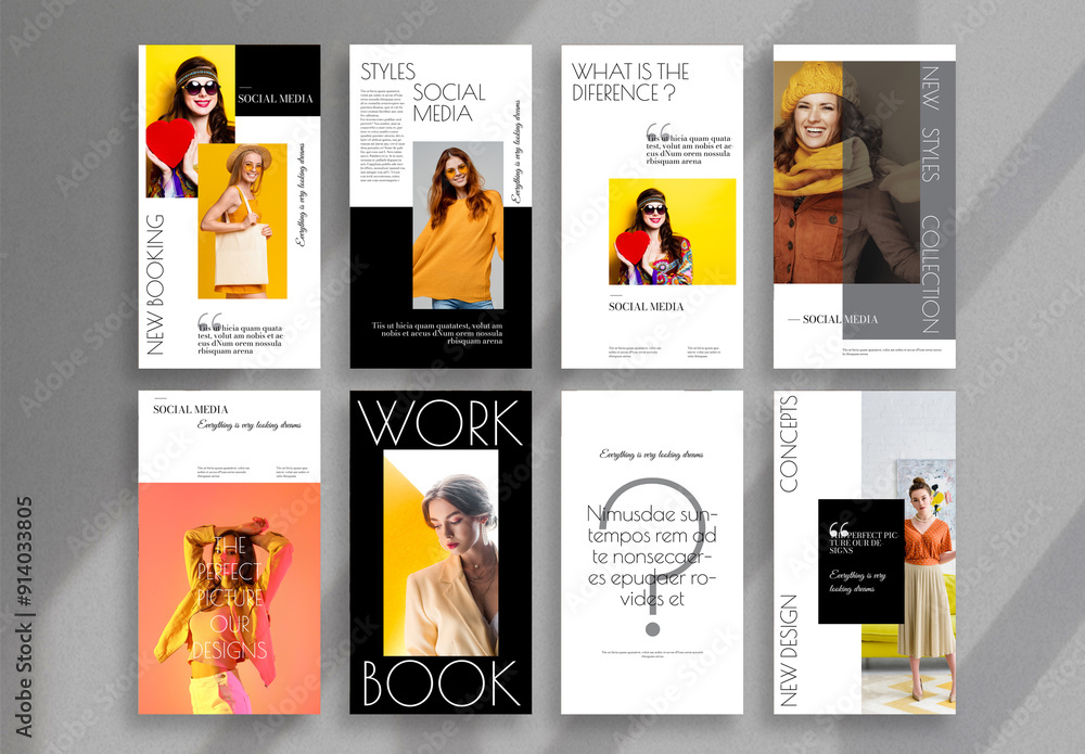 Social Media Post Layouts with Yellow Accents Stock Template | Adobe Stock