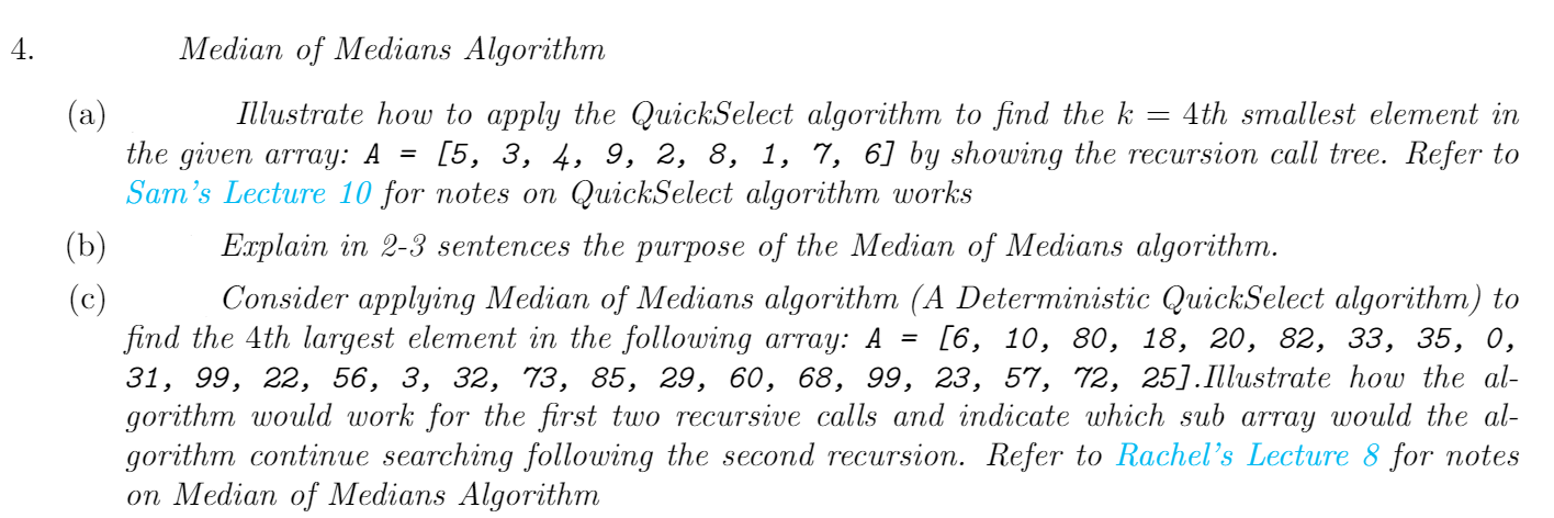 4. Median of Medians Algorithm (a) (b) (c) Illustrate | Chegg.com