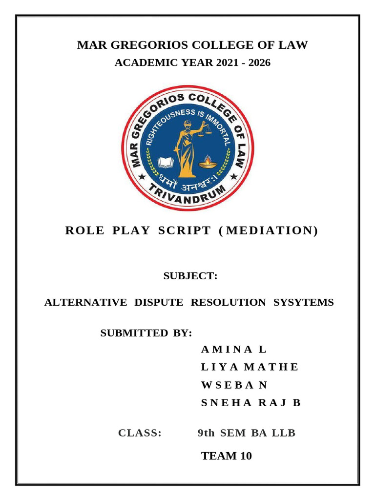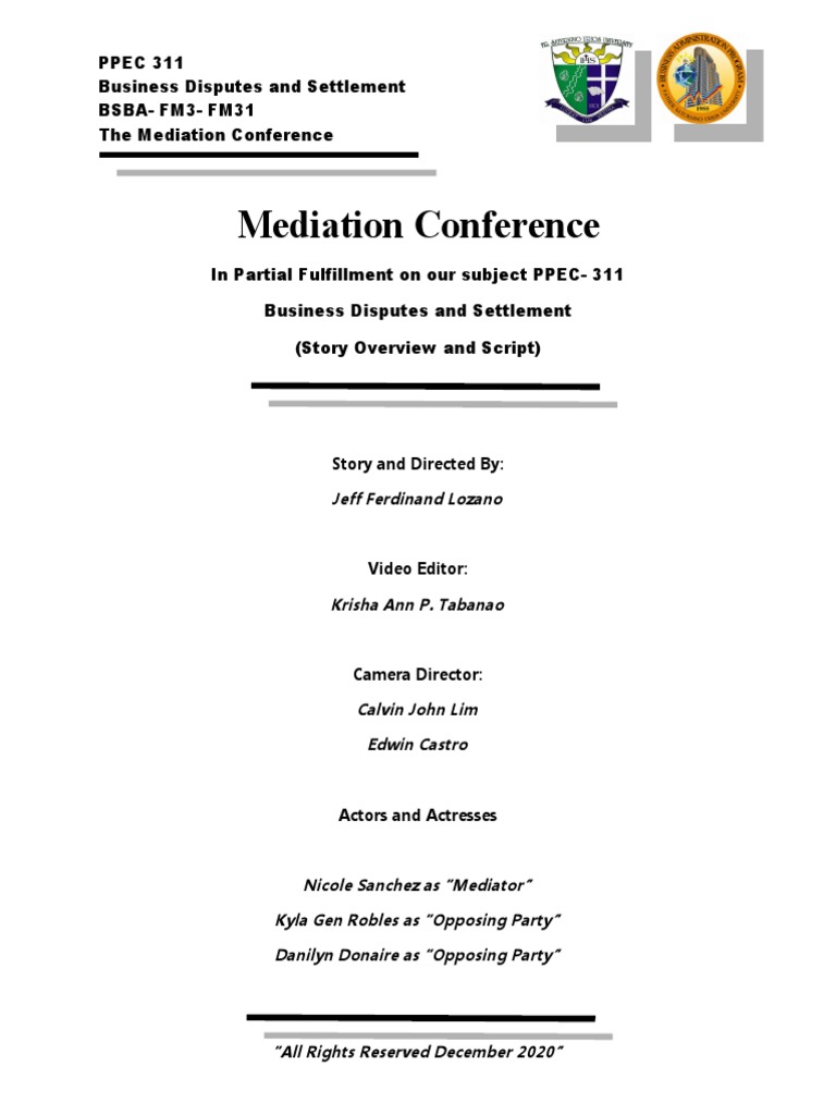 Mediation - MEDIATION SCRIPT Negotiation & Dispute Resolution Due Date ...