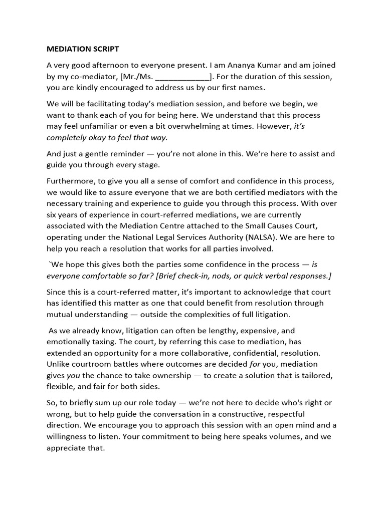 MEDIATION SCRIPT.docx - MEDIATION SCRIPT As a mediator we are doing a ...