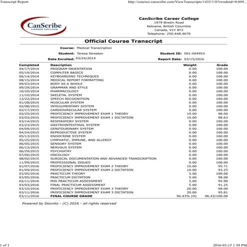 Medical Assistant Diploma Unofficial Transcript: GPA 3.03, | Course Hero