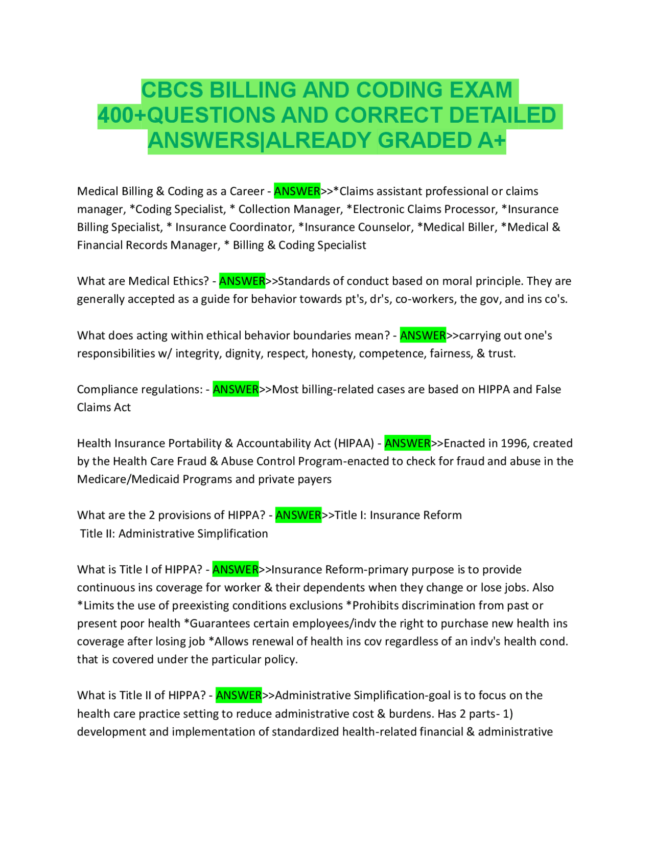 Medical Billing and Coding Exam Q&A: Comprehensive Study Guide | Exams ...