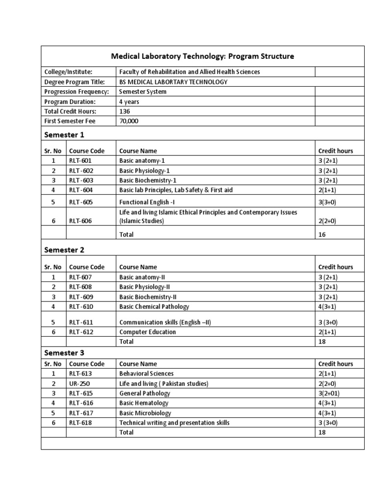 Medical Laboratory Technology - Program Structure-Converted - 0 | PDF ...