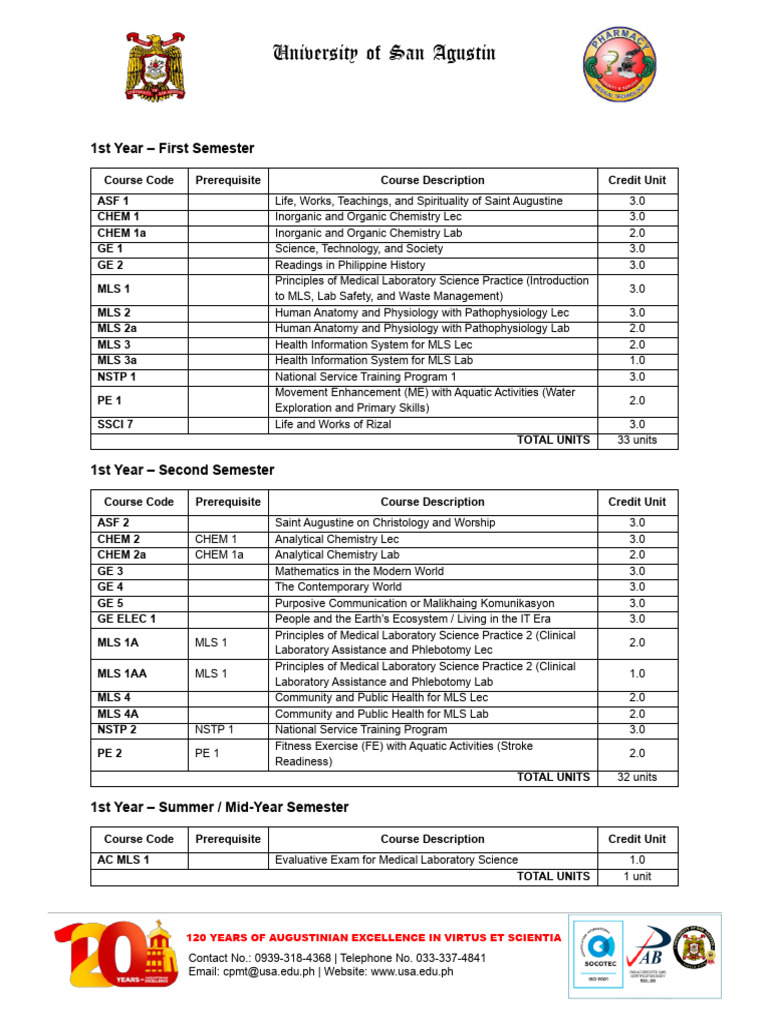 Course Outline for Medical Laboratory Science (MLS) Program - Studocu