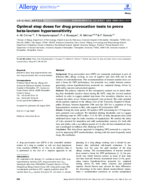 (PDF) Drug Provocation Testing in the Diagnosis of Symmetrical Drug ...