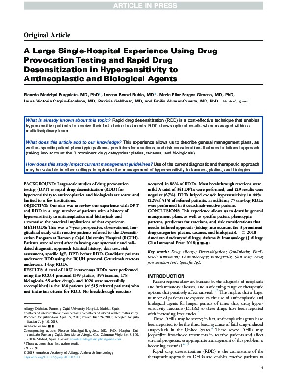 (PDF) A Large Single-Hospital Experience Using Drug Provocation Testing ...