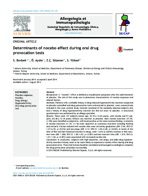 (PDF) Determinants of nocebo effect during oral drug provocation tests