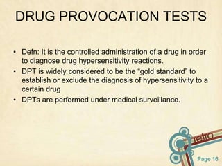 Drug provocation test, tes provokasi obat | Allergy | Pharmaceutical Drug