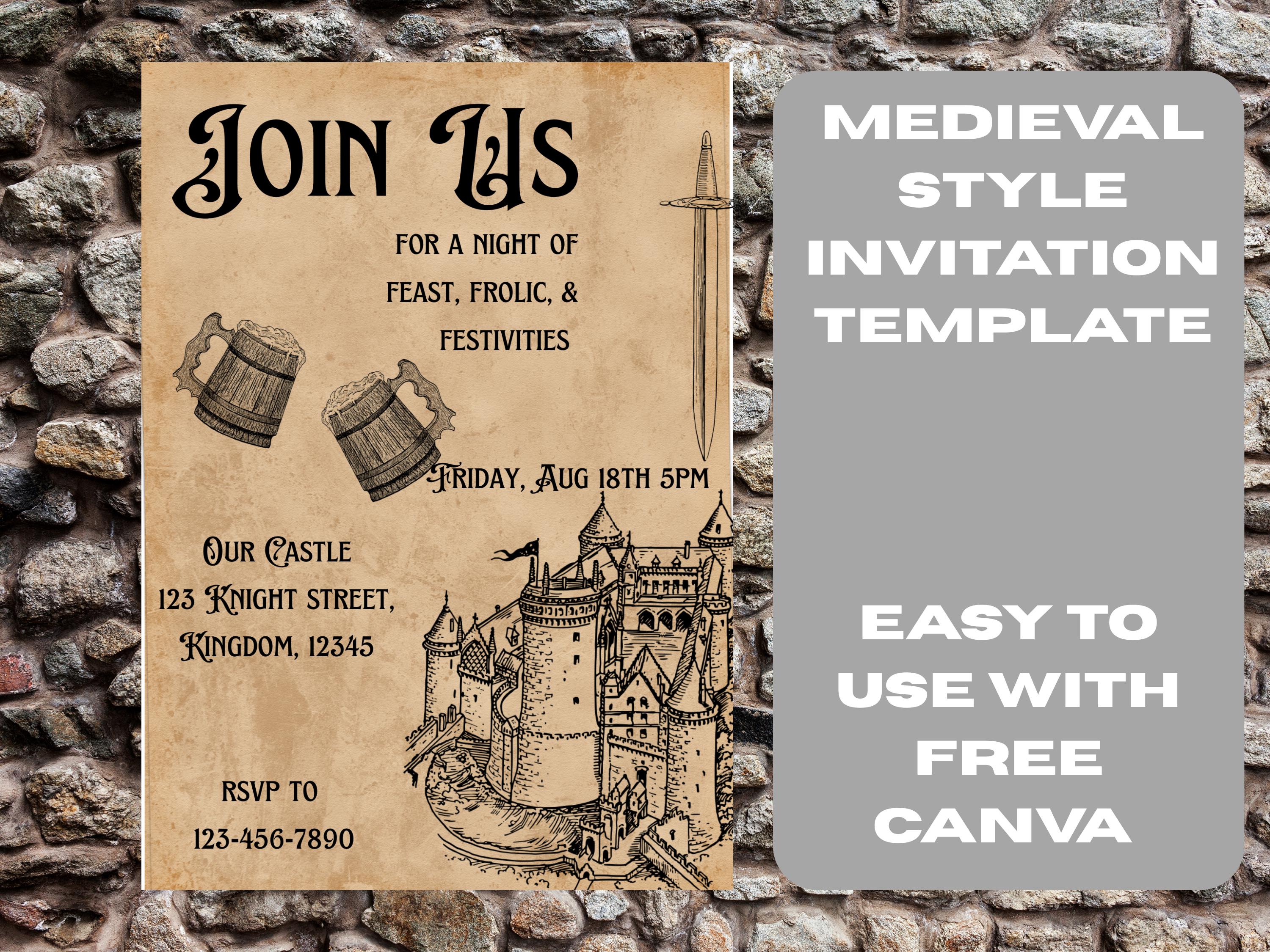 Medieval Party Invitation: Renaissance Fair, Dnd, Castle Theme (canva ...