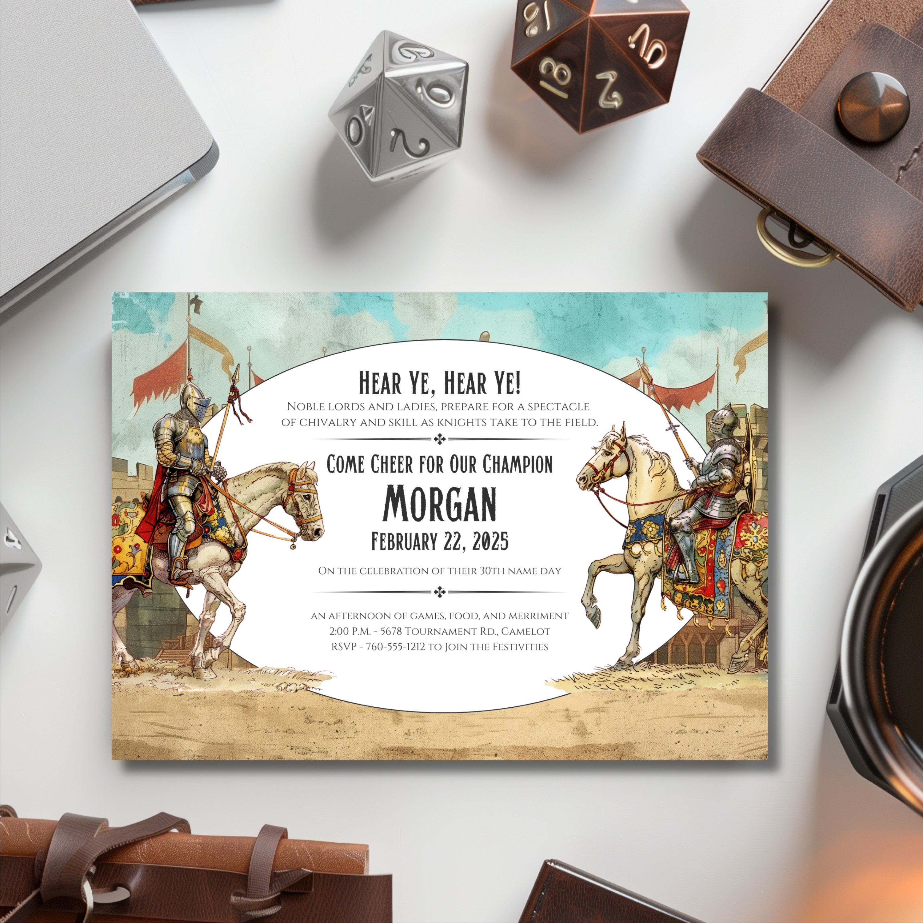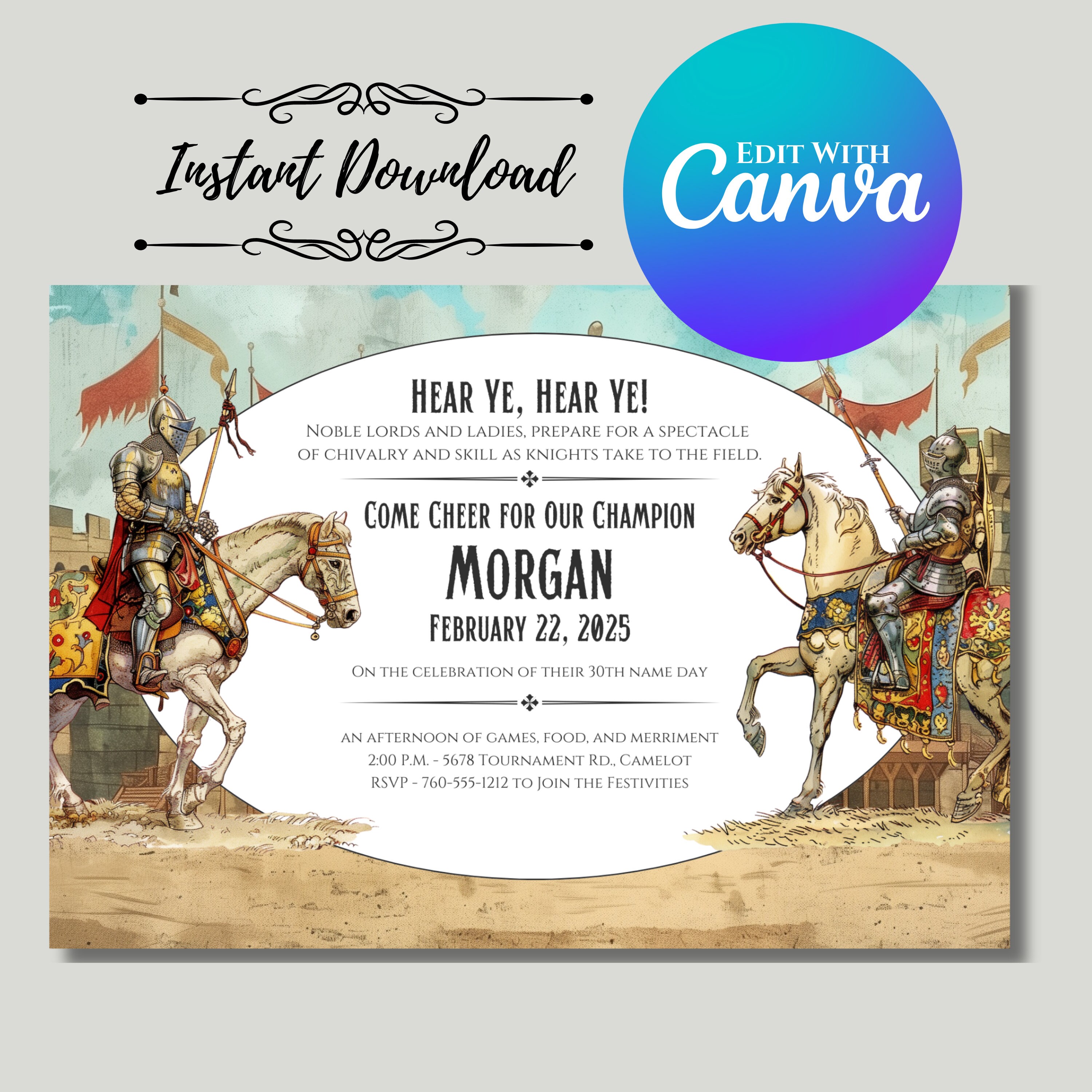 Editable Medieval Camelot Party Invitation - Jousting Knights on White ...