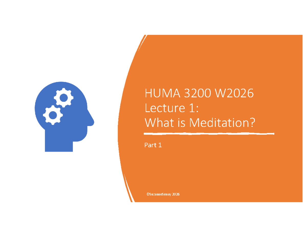 HUMA 3200 W2026 Lecture 1: Understanding Meditation and Attention - Studocu