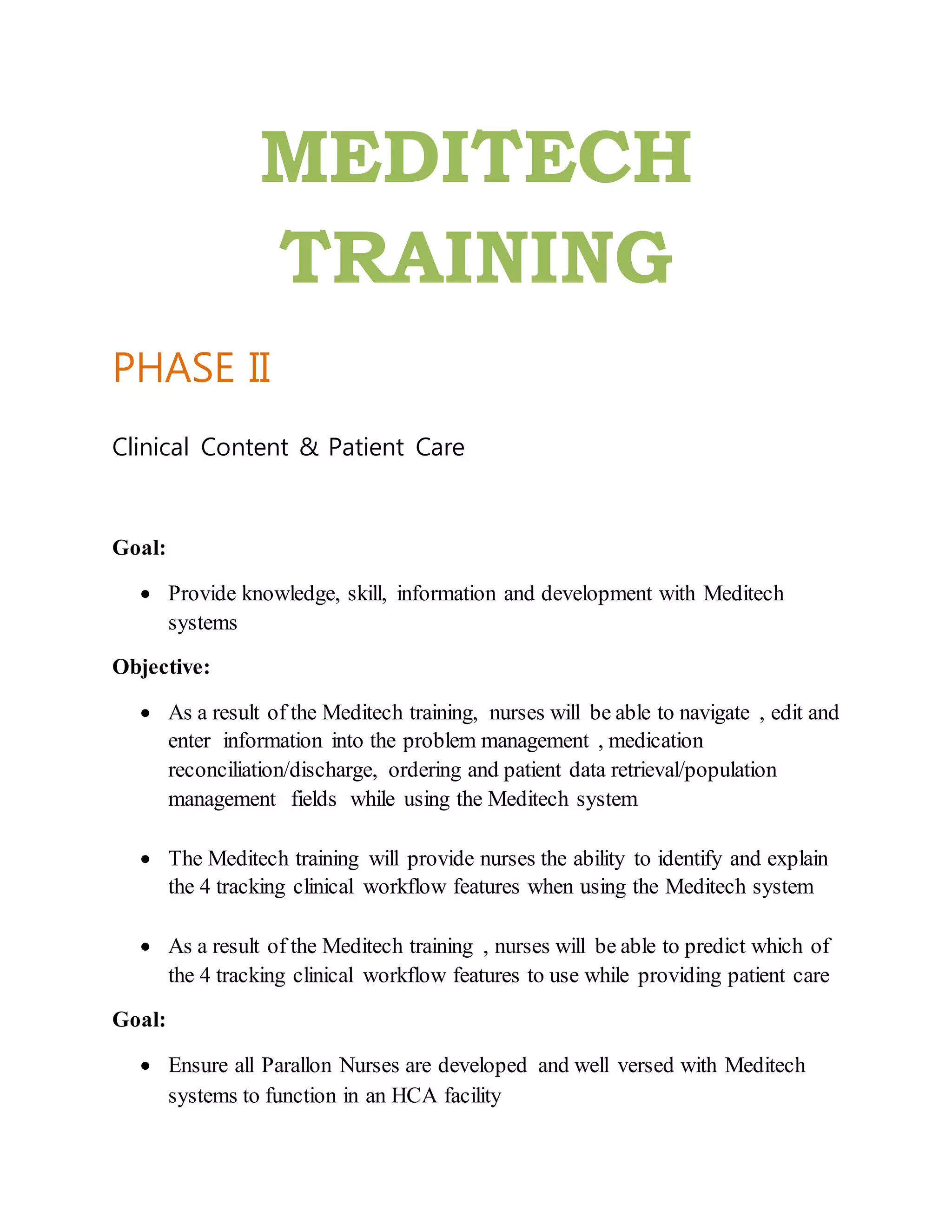 Meditech training phase ii | DOCX