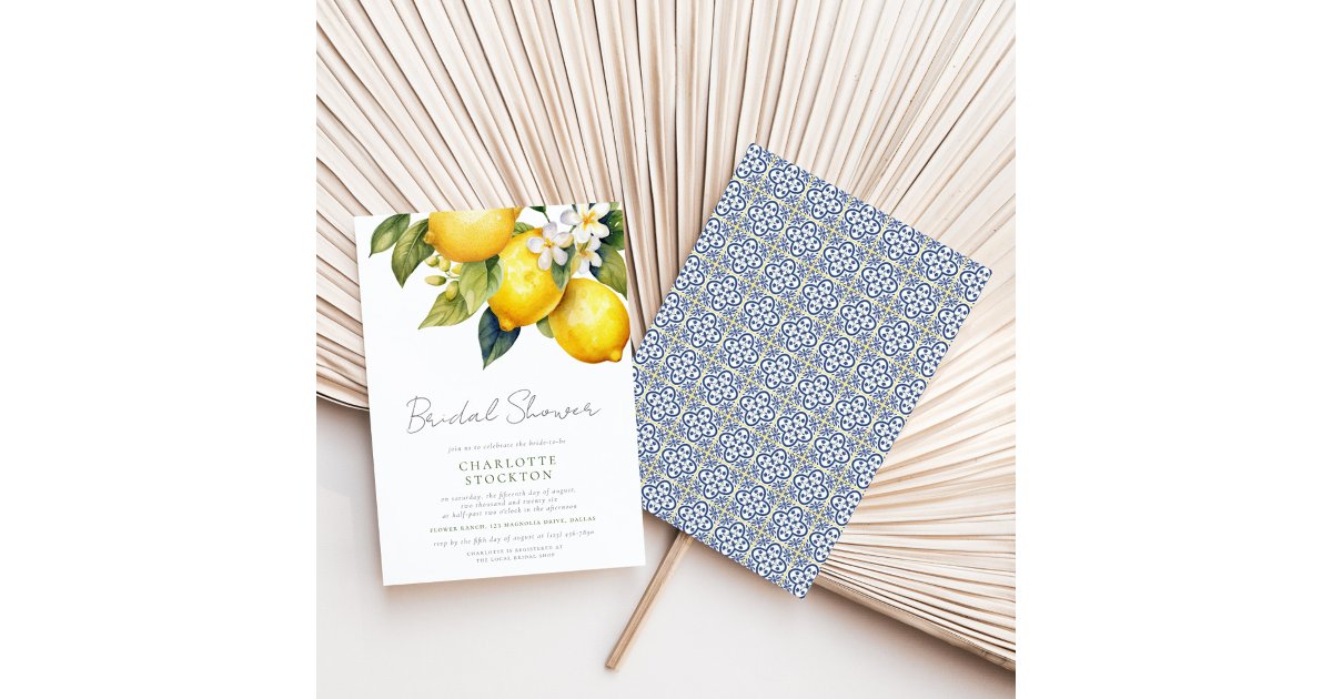 Rustic Script Mediterranean Lemon Bridal Shower Invitation | Zazzle