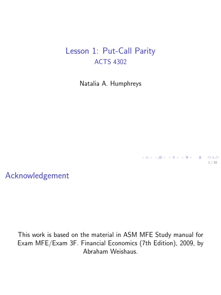 MFE Lesson 1 Slides | PDF | Option (Finance) | Call Option