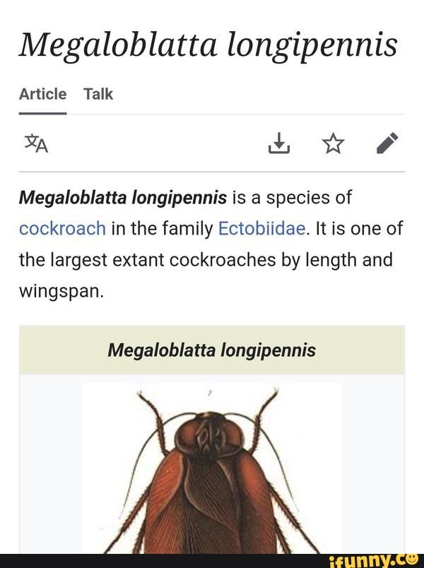 Article Talk Megaloblatta longipennis sw Megaloblatta longipennis is a ...