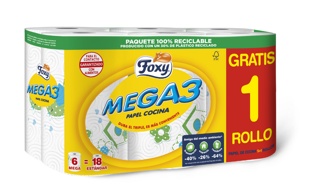 Papel de cocina Foxy Mega3. Los triples rollos inteligentes. - Foxy