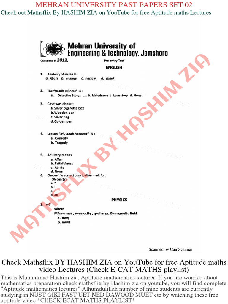 Mehran University Past Papers||Mehran University Entry Test Preparation ...