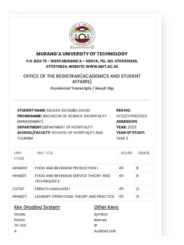 Murang'a University Transcript Summary | PDF