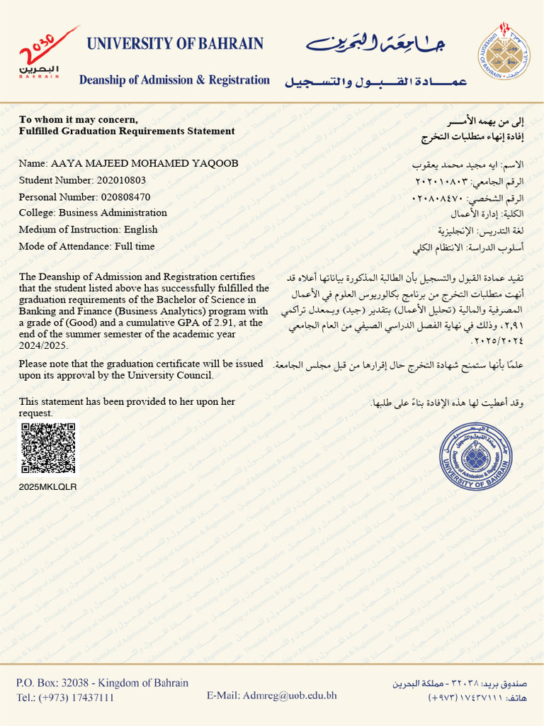 Student Transcript - ID : 2019/15624 Birth Date : 16/8/ Student ...