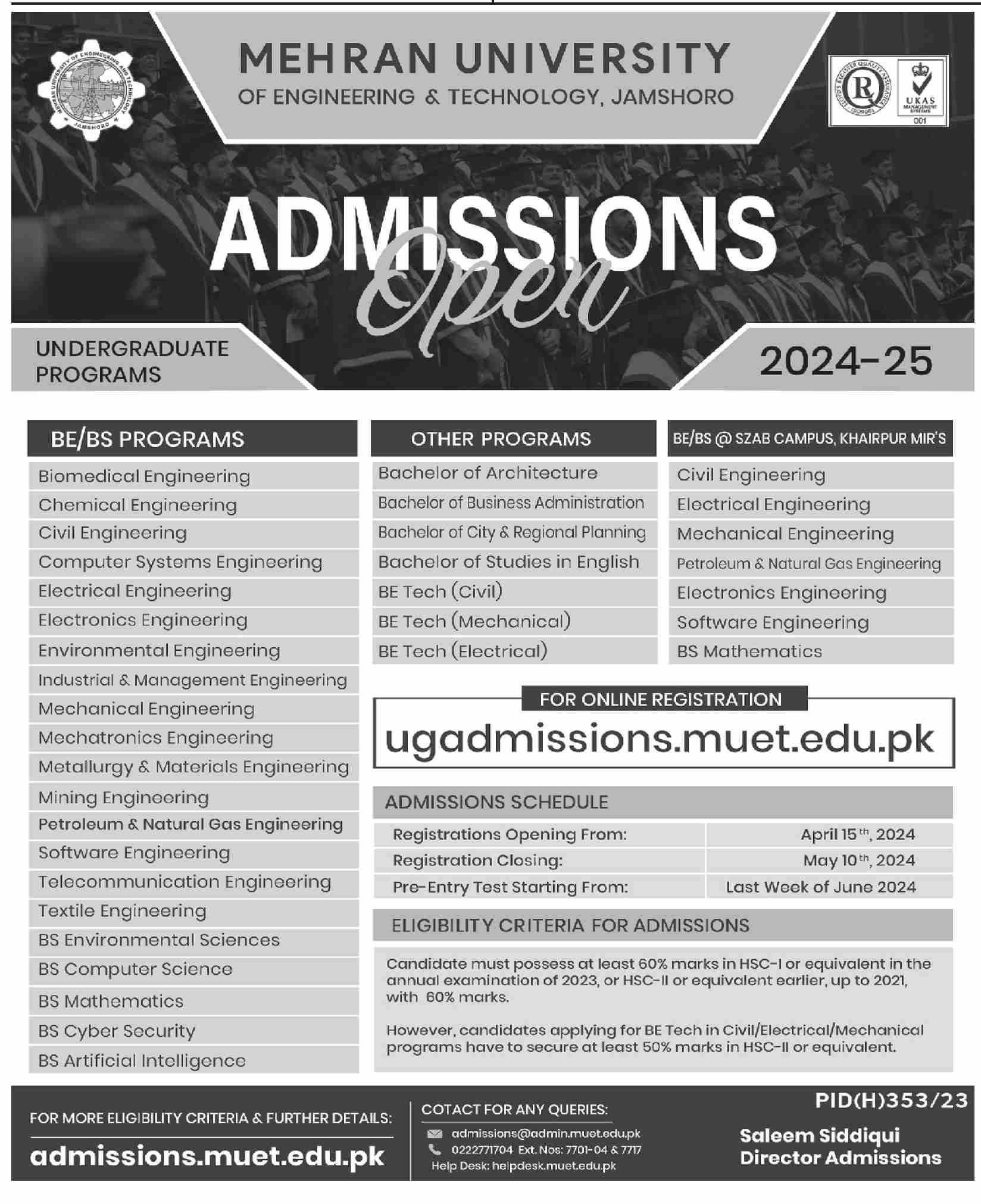 Mehran University Admission 2025 | MUET Admission 2025 | Mehran ...