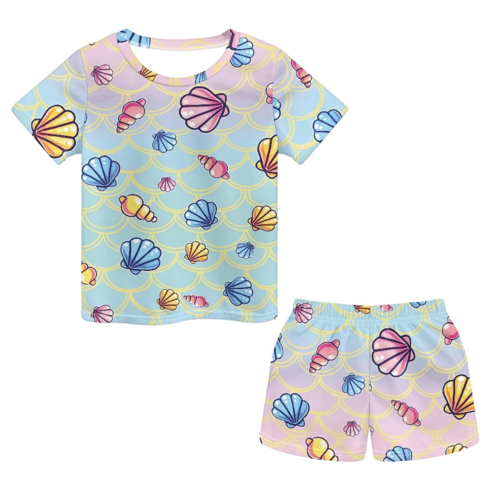 chaqlin Girls Short Sleeve Suit Crew Neck Tank and Shorts Set Mermaid ...
