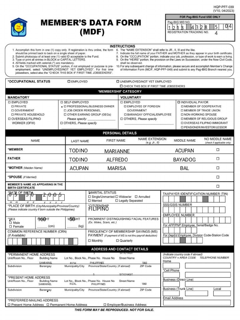 Member's Data Form (MDF) PAG-IBIG | PDF