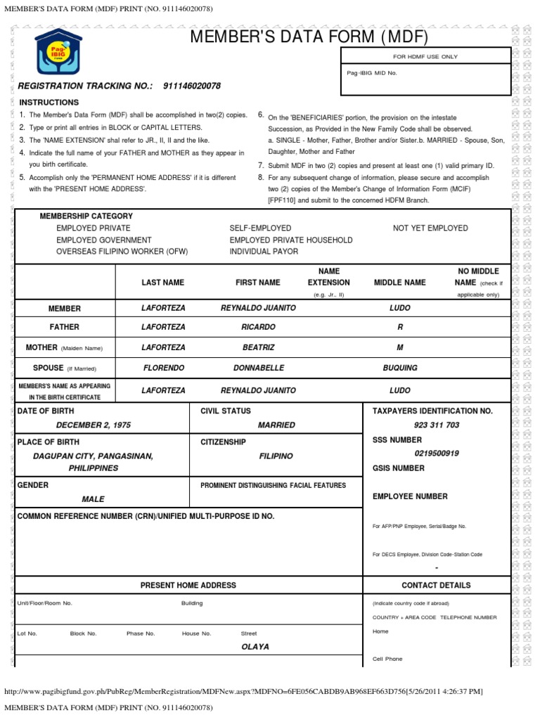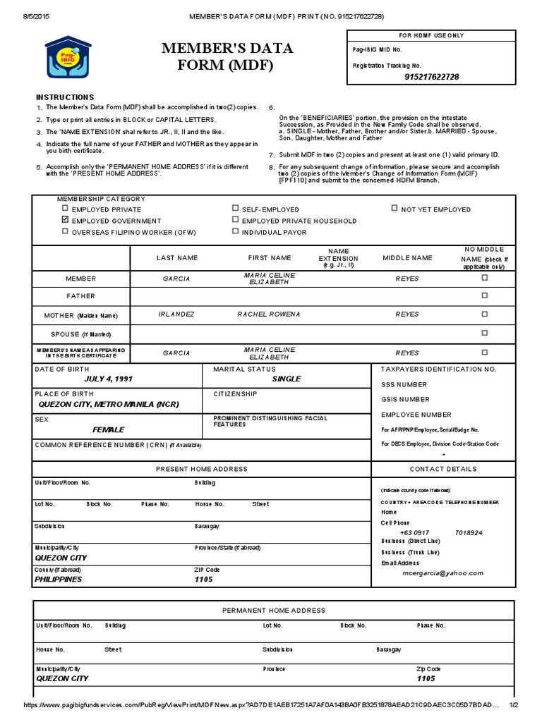 Pag Ibig Member's Data Form Online Registration - Form : Resume ...