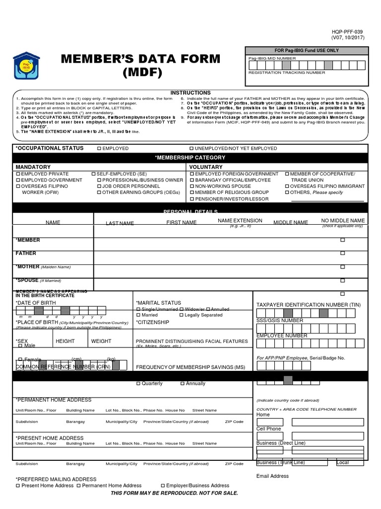 Editable and Downloadable Form - MEMBER’S DATA FORM (MDF) FOR Pag-IBIG ...