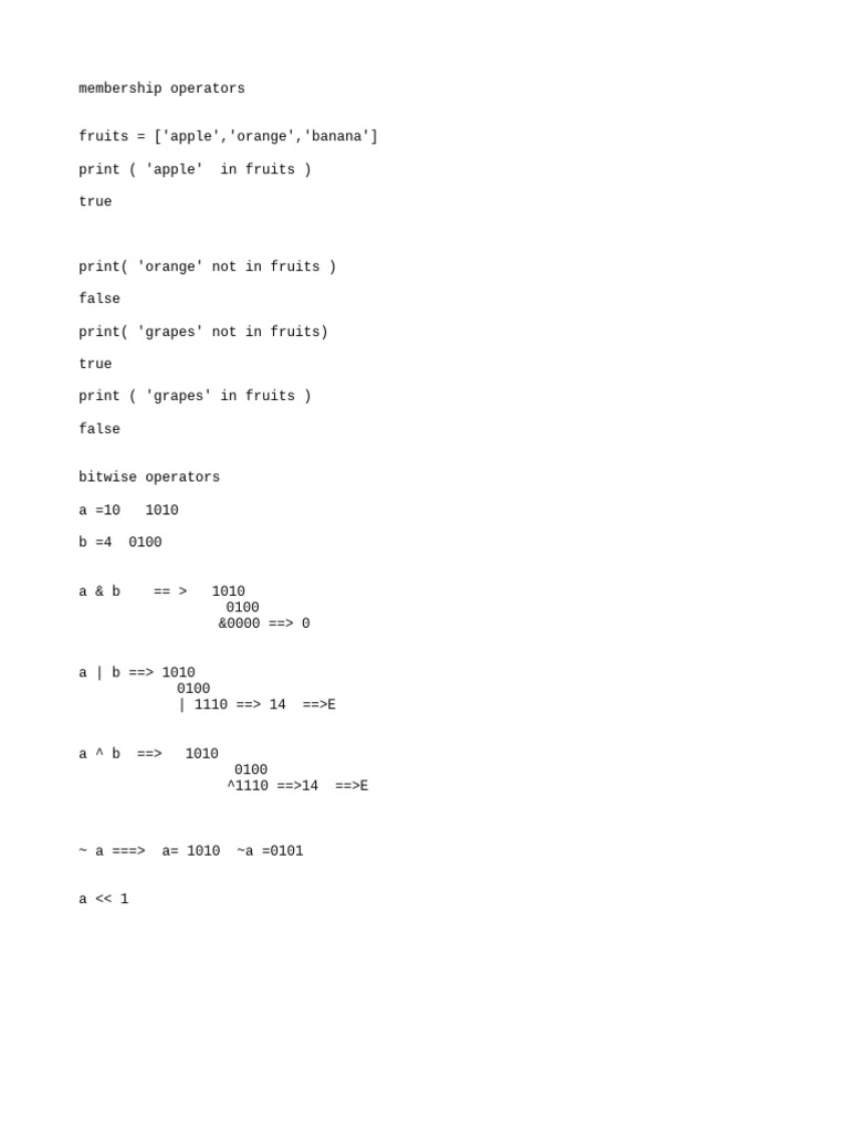 Bitwise Identity Membership Operators | PDF