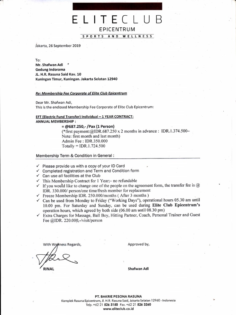 Quotation Membership at Elite Club Epicentrum - 0001 | PDF