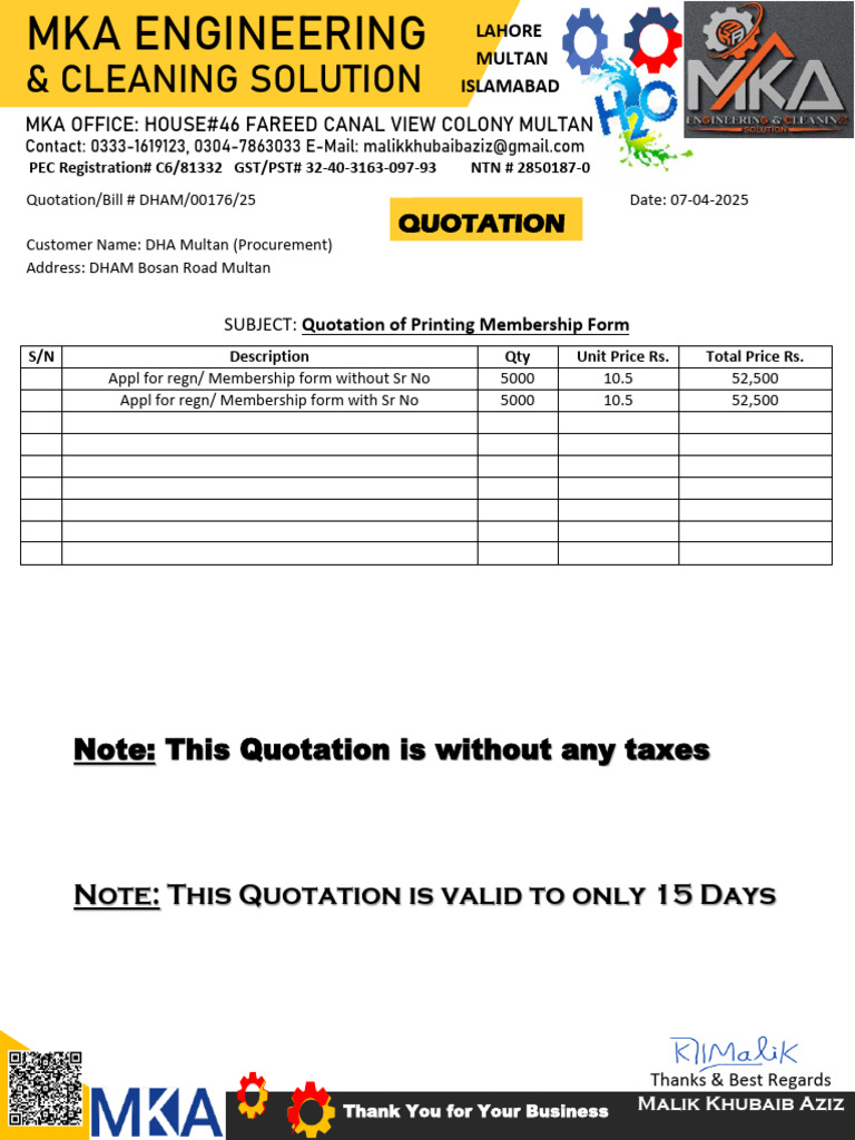 07-04-2025 Quotation of Member Ship Form Printing | PDF